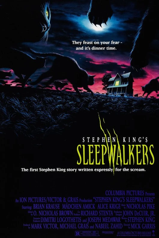 Sleepwalkers is a 1992 American horror film written by Stephen King and directed by Mick Garris. It follows a mother-and-son duo of shapeshifting creatures who feed on the life force of young women, blending vampire mythology with feline folklore. The cast of the film consists of Brian Krause, Mädchen Amick, and Alice Krige.