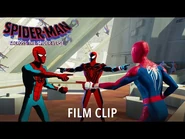 Gwen travels to Earth-1610 and reconnects with Miles while secretly tracking the Spot. Miles, invisible, watches Gwen trace the Spot to Earth-50101 before Jess calls Gwen, instructing her to cut off contact with Miles. Miles follows Gwen through a portal to Earth-50101, and they team up with Spider-Men Pavitr Prabhakar and Hobie Brown against the Spot, who absorbs the power of that world's collider. Before the Spot escapes, he and Miles share a vision of his future attack that includes Miles' father Jeff. As the collider collapses, Miles saves Police Inspector Singh, the father of Pavitr's girlfriend, but the dimension begins falling apart from a disrupted "canon event". Members of the Spider-Society arrive to assess the damage, while Miles, Gwen, and Hobie are sent to the Society's headquarters in Nueva York on Earth-928, where hundreds of Spider-People reside in a massive complex.